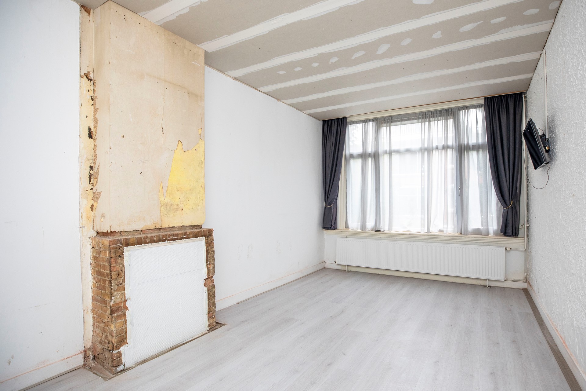 De woonkamer aan de voorzijde is een heerlijke, lichte leefruimte dankzij de charmante erker die zorgt voor extra sfeer en een prachtige lichtinval. Doordat de ruimte oorspronkelijk was verdeeld in een voor- en tussenkamer, geniet u nu van een royale woonkamer met volop mogelijkheden voor het creëren van een comfortabele zit- en eetkamer.