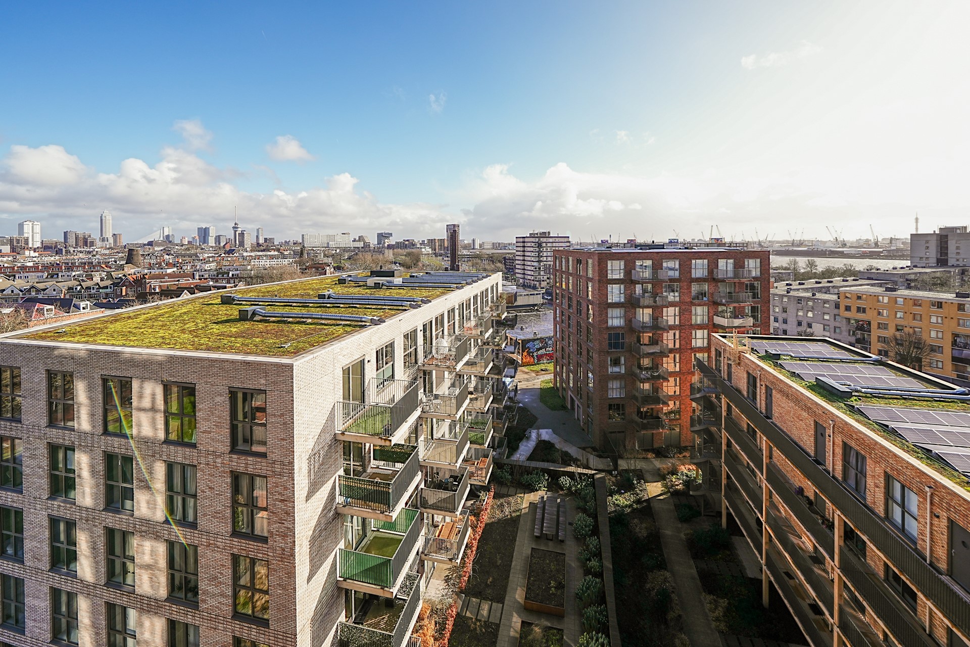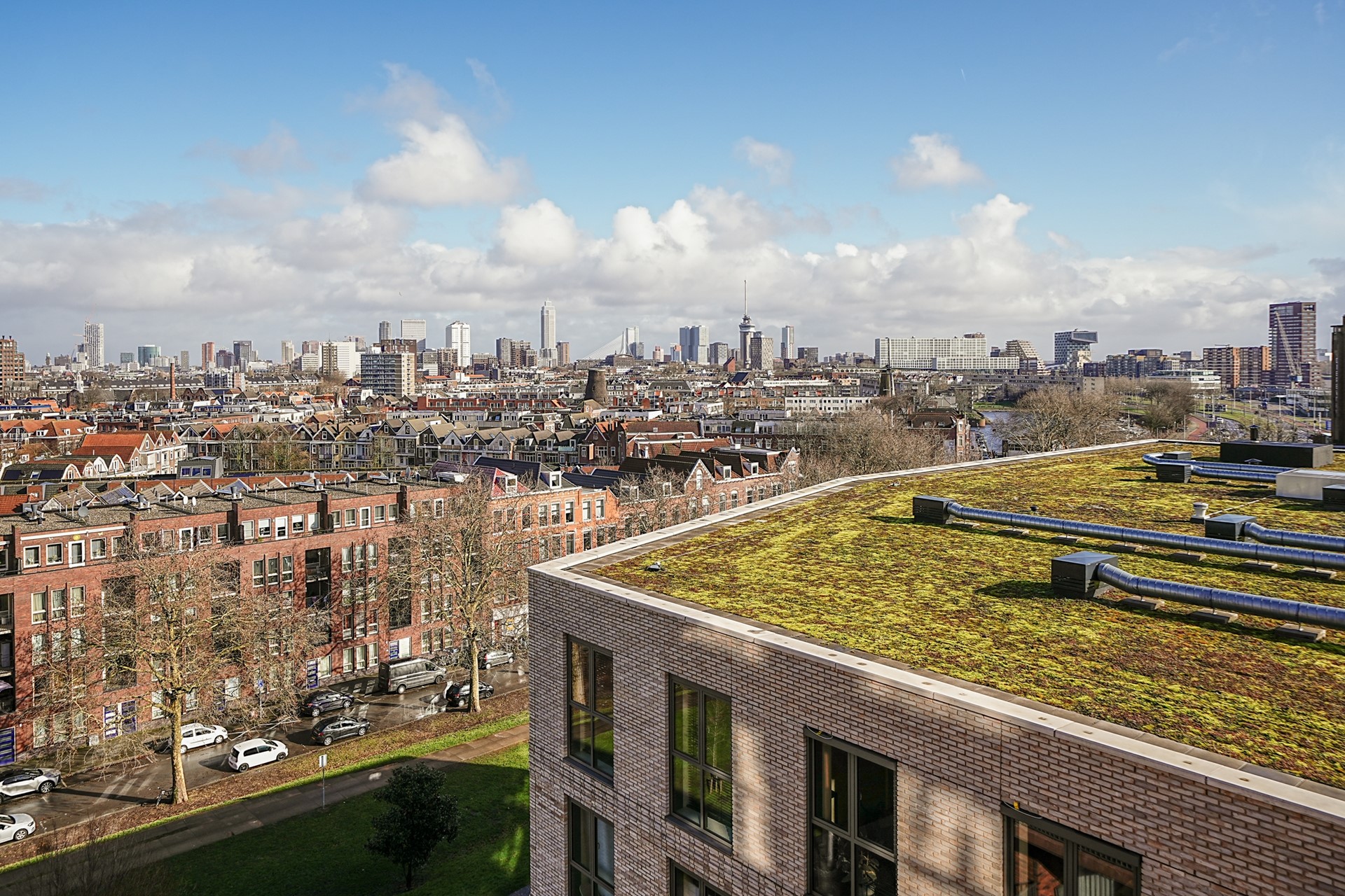 Het centrum van Rotterdam ligt op circa 10 minuten fietsafstand en op 5 minuten loopafstand bevindt zich de Parkboulevard met haar bigshops. Wanneer u de voordeur uitstapt loopt u zo het grootste openbare dakpark van Nederland op. Hier vindt u moestuinen, een groot restaurant, waterpartijen en mooi aangelegde grasvelden. Het is daar heerlijk recreëren op mooie zonnige dagen. De winkelstraat ‘Schiedamseweg’ met winkels, het historisch Delfshaven met restaurants en cafés, en openbaar vervoer (tram en metro) zijn allemaal op loopafstand.