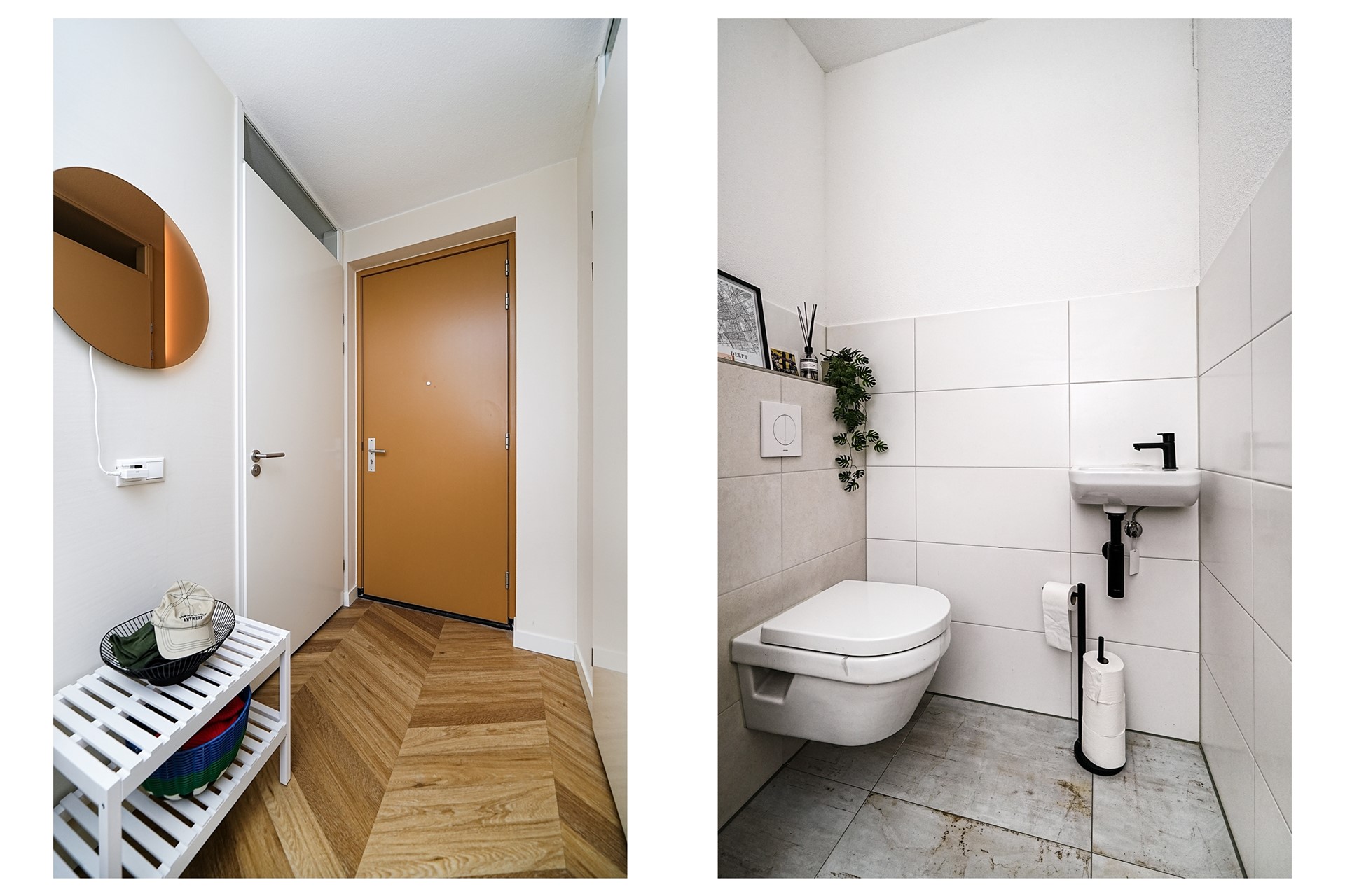 De woning beschikt over twee slaapkamers, beide met dezelfde hoogwaardige afwerking als de woonkamer, inclusief de fraaie houtlook PVC-vloer met vloerverwarming en strak afgewerkte wanden.