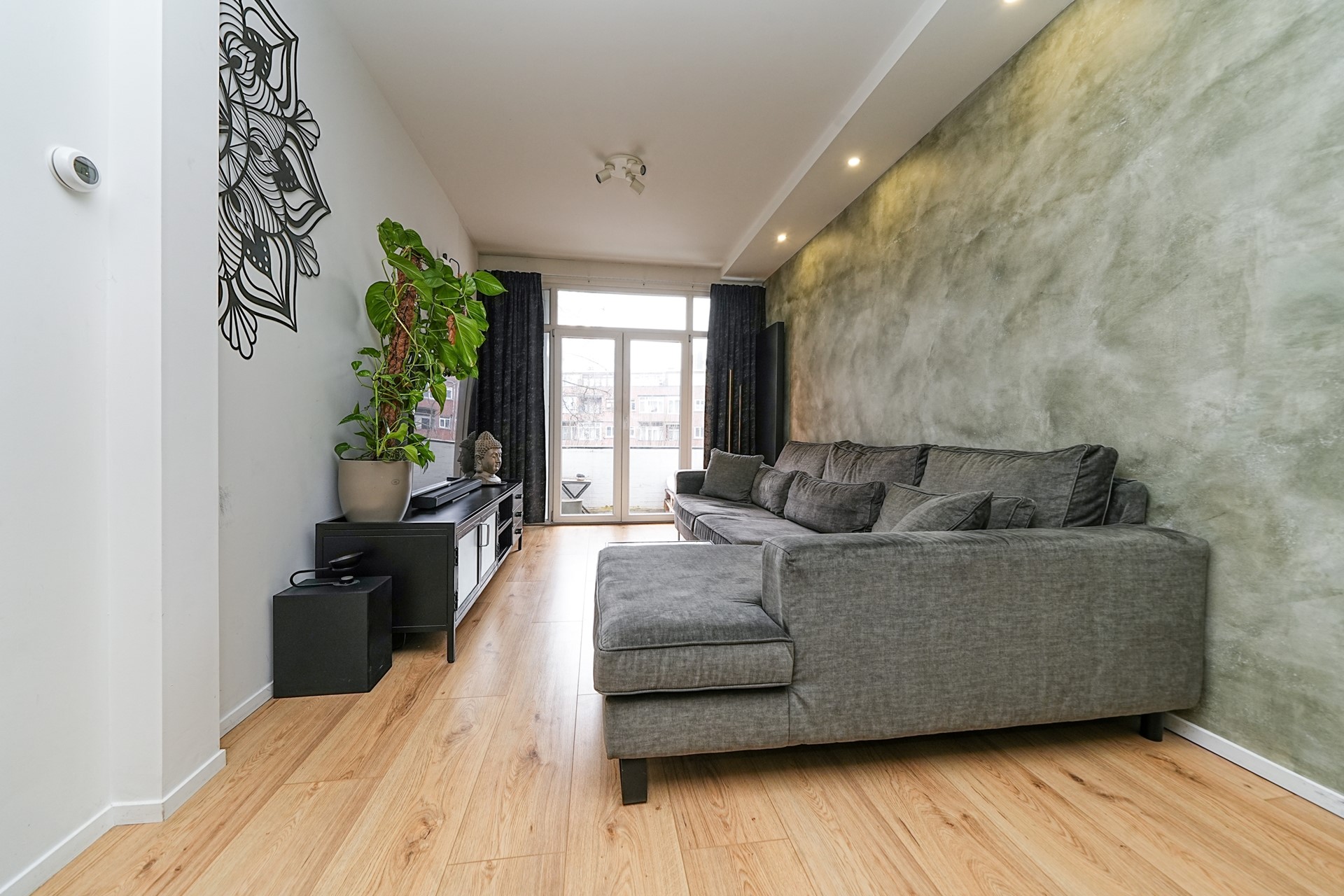Via de voordeur stap je direct binnen in dit lichte en strak afgewerkte appartement. De open en frisse sfeer valt meteen op. Door de gehele woning ligt een nette laminaatvloer en de wanden zijn glad gestukt, wat zorgt voor een moderne uitstraling.