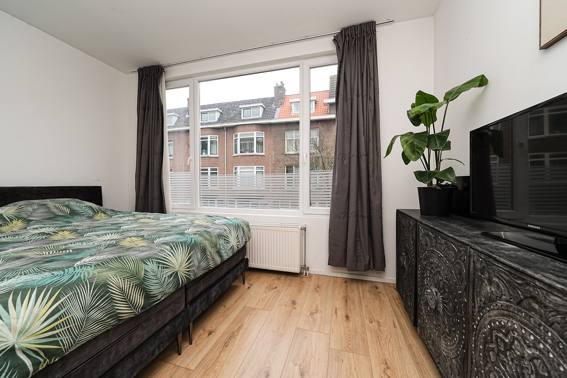 Aan de voorzijde van de woning bevindt zich de ruime hoofdslaapkamer, met uitzicht op de gezellige straat. Dankzij de grote ramen met kunststof kozijnen is ook hier veel lichtinval.