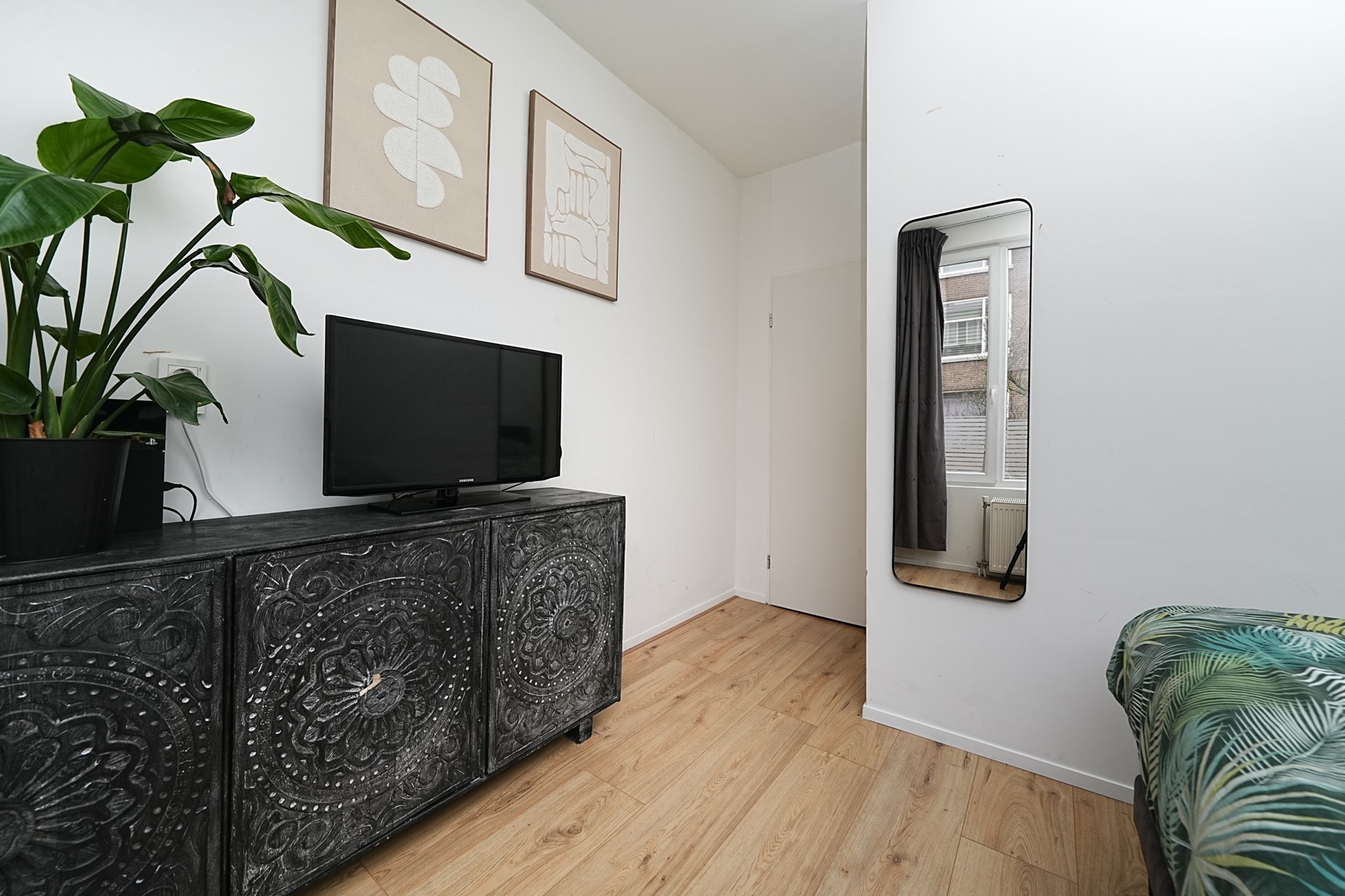 De tweede slaapkamer ligt aan de achterzijde en is bereikbaar via de woonkamer. Deze kamer is veelzijdig in gebruik: ideaal als logeerkamer, werkkamer of inloopkast. Momenteel is deze ingericht als kastenkamer.