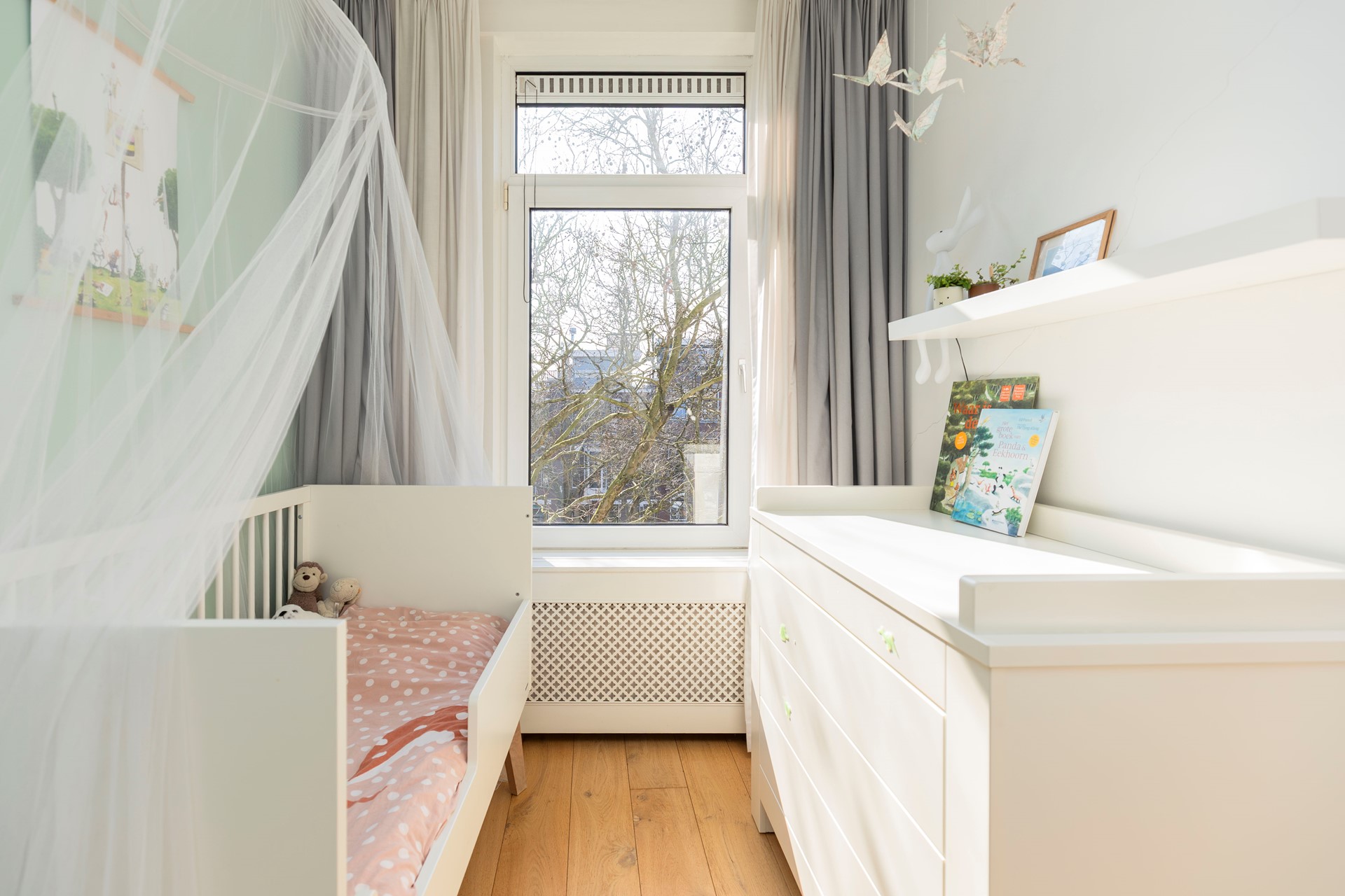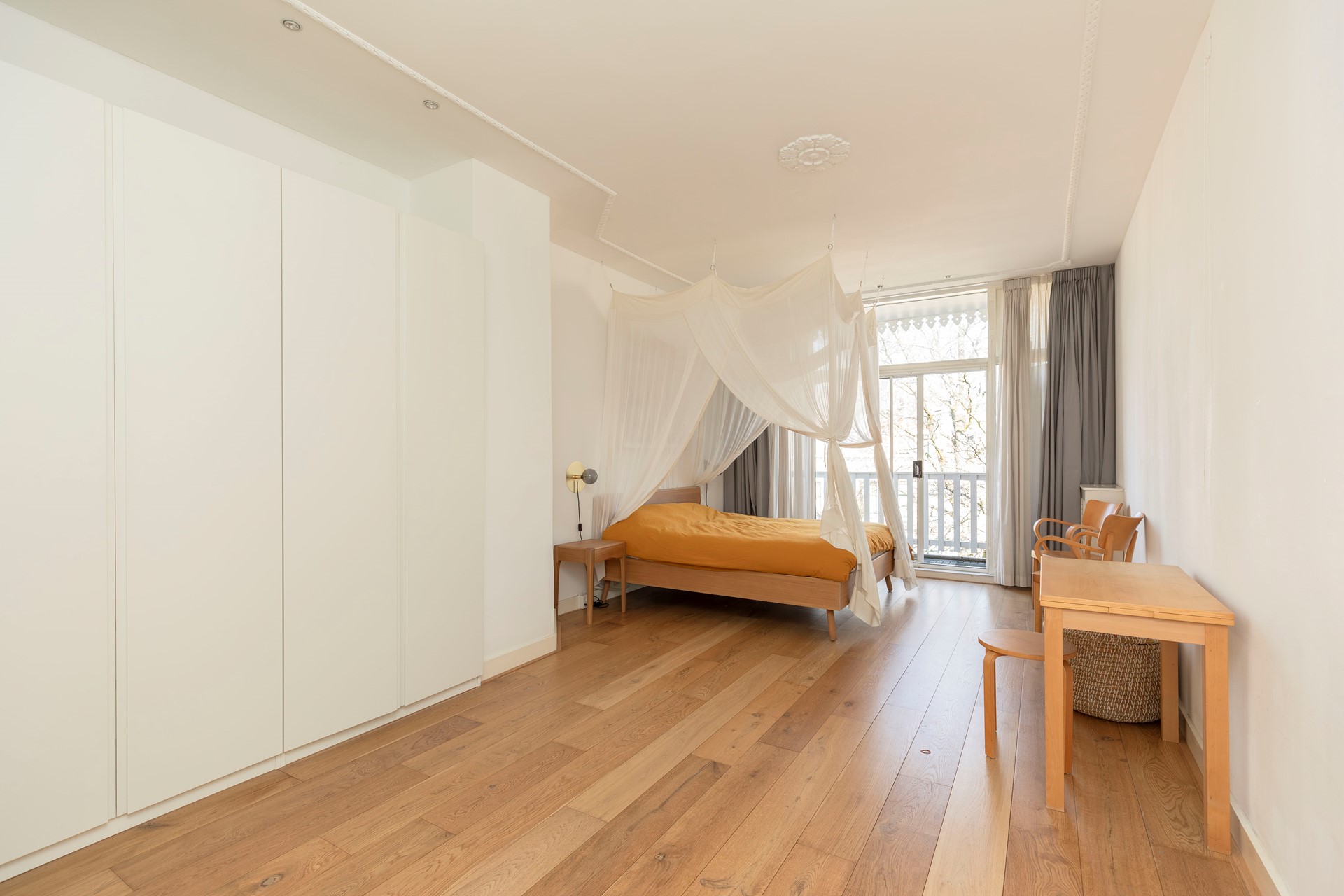 Op deze verdieping bevinden zich drie slaapkamers en de badkamer. De ruime slaapkamer aan de achterzijde bestond oorspronkelijk uit twee kamers en biedt volop ruimte voor een groot tweepersoonsbed en een royale kastenwand. Via een schuifpui is er toegang tot het tweede balkon.