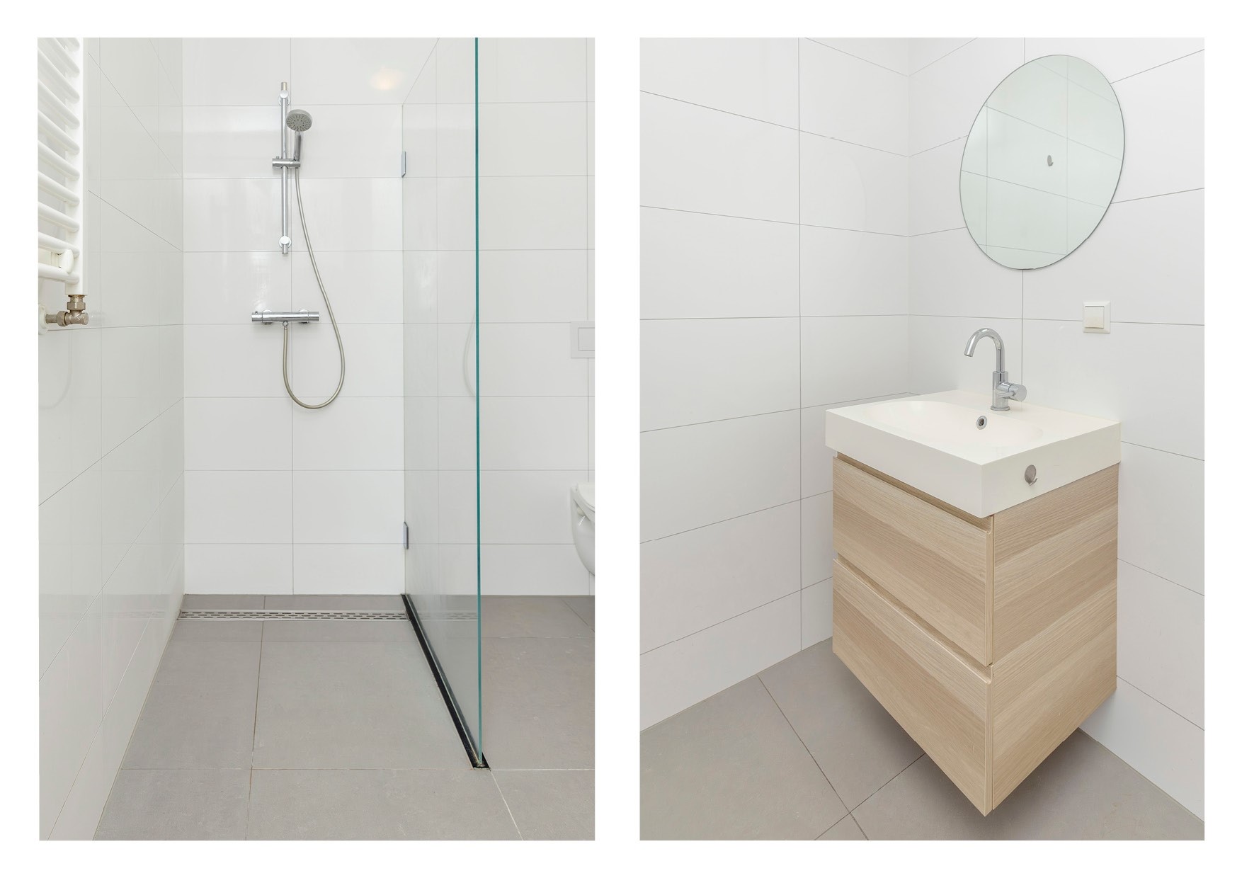 De badkamer beschikt over een inloopdouche en een wastafel met meubel, toilet en is volledig betegeld met grote wand en vloertegels. Er is nog een aparte berging met de opstelling voor de cv-ketel. Zoek niet langer, dit is een fantastische woning.