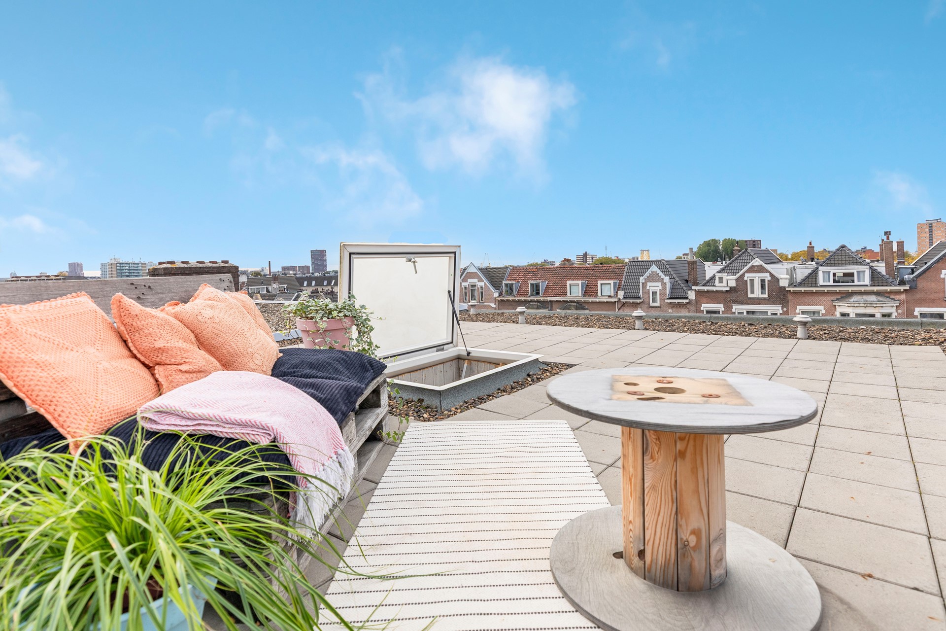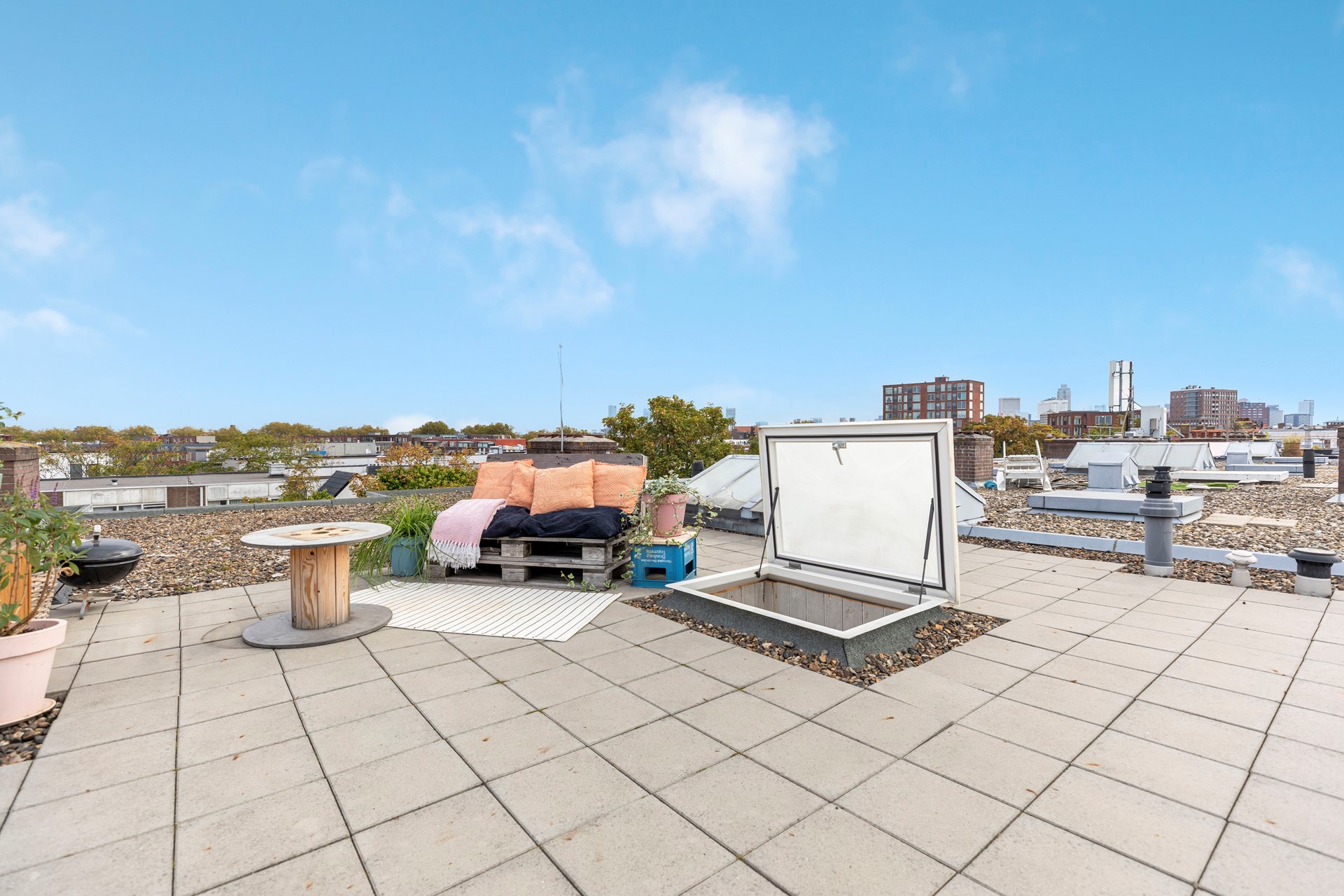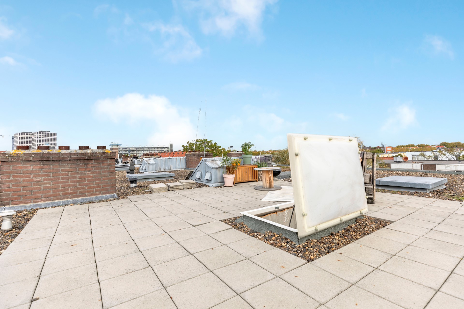 Het absolute hoogtepunt van deze woning is het royale dakterras. Hier kunt u op elk moment van de dag een plekje in de zon vinden en optimaal genieten van het buitenleven. Of u nu een kop koffie drinkt in de ochtendzon, een boek leest in de middag of ’s avonds vrienden uitnodigt voor een gezellige borrel: dit terras maakt het allemaal mogelijk. Het dakterras is niet meegenomen in de splitsing. De VVE heeft toestemming geven.