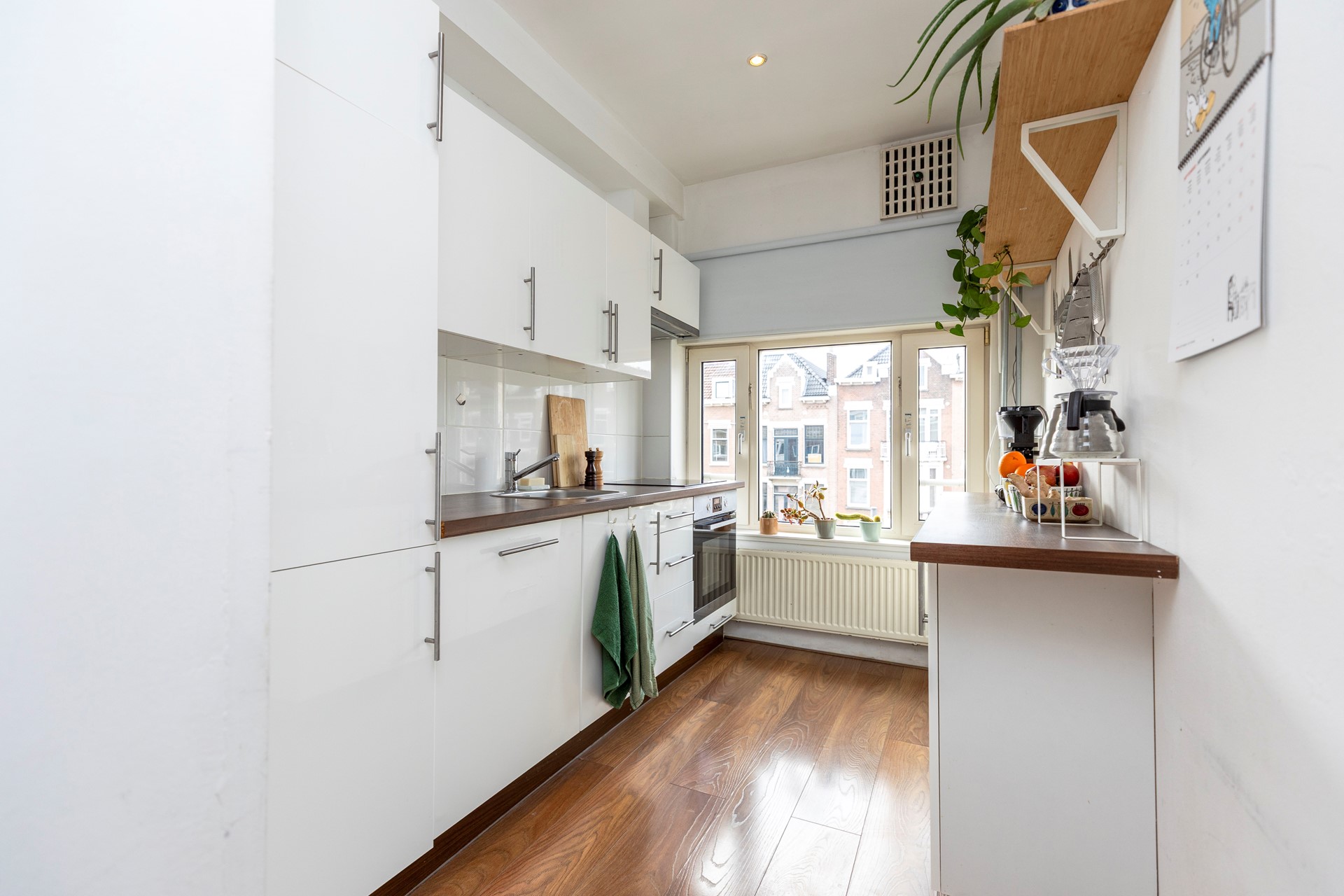 Dankzij het grote raam geniet u ook hier van veel daglicht. De keuken is voorzien van de nodige inbouwapparatuur.