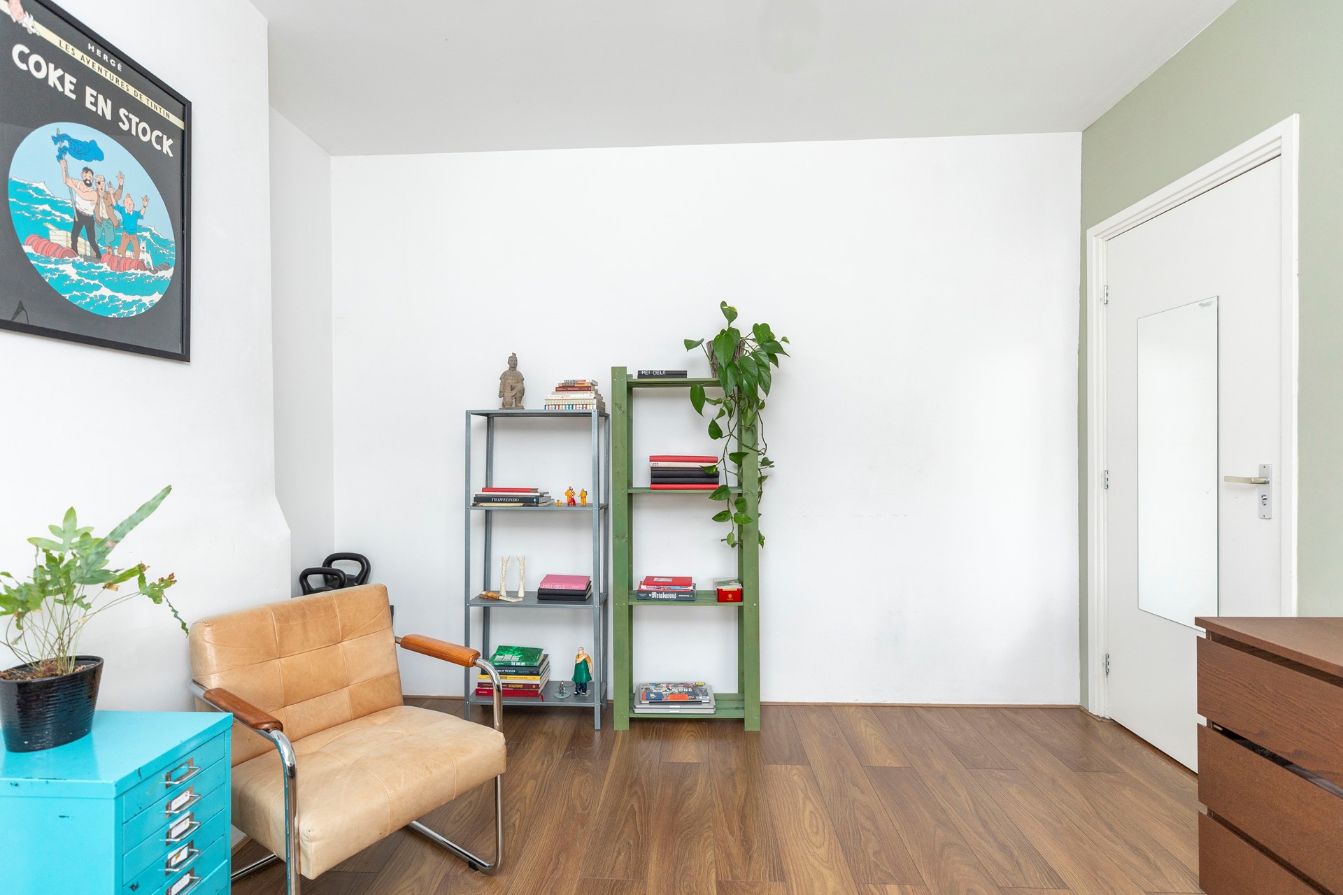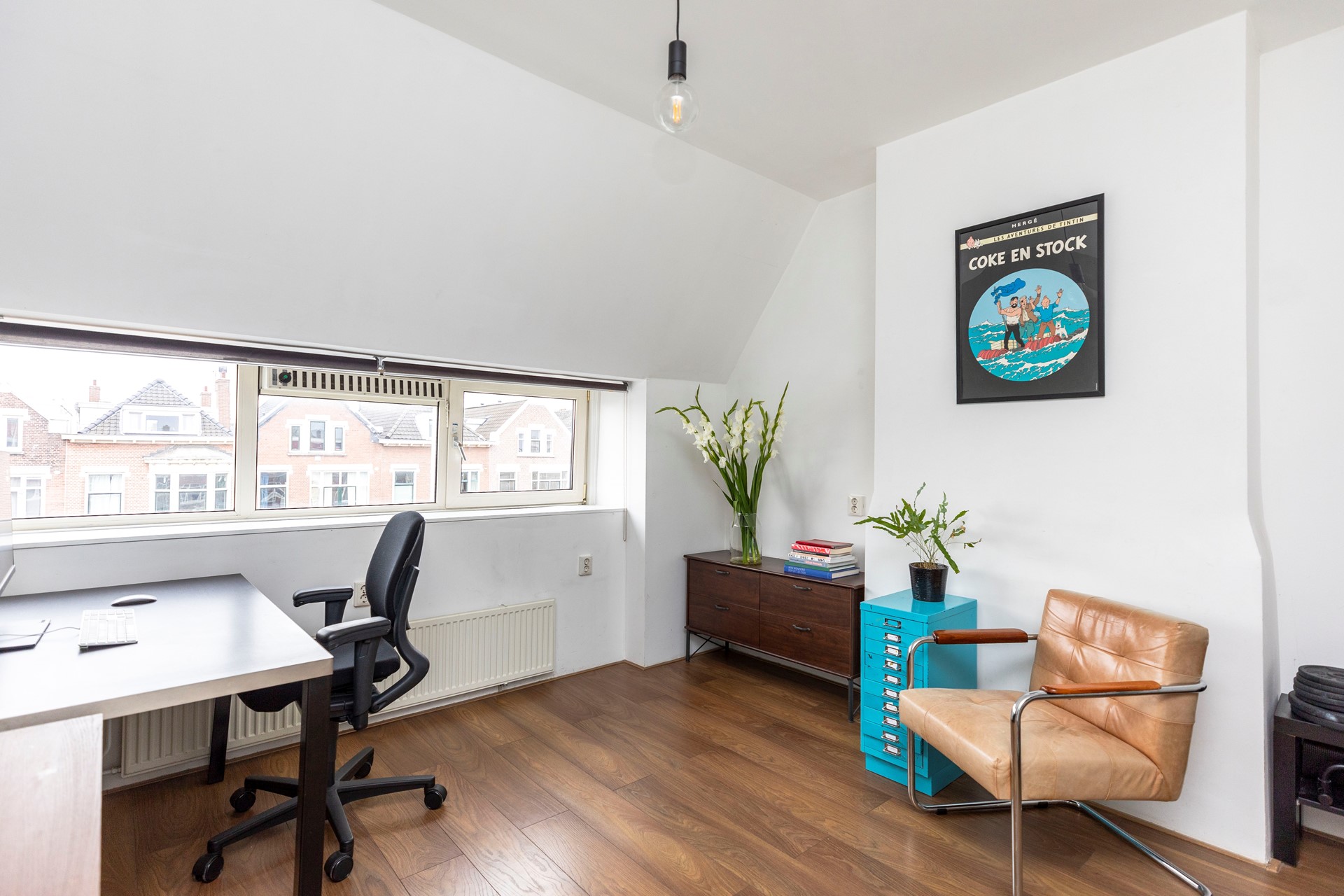 Op de vierde verdieping vindt u nog twee slaapkamers. De ruime slaapkamer wordt momenteel gebruikt als werk-/studeerruimte en is ideaal voor wie thuis wil werken of studeren. De kleinere slaapkamer is flexibel inzetbaar: perfect als logeerkamer, kinderkamer, inloopkast of tweede werkruimte. Dit geeft u volop mogelijkheden om de verdieping naar eigen wens in te richten.