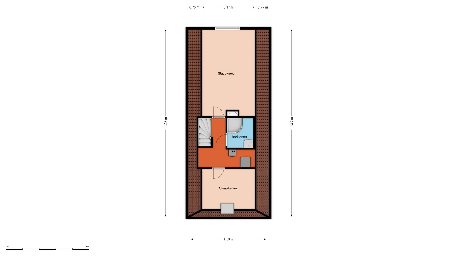 De overloop geeft toegang tot twee ruime slaapkamers en de badkamer.