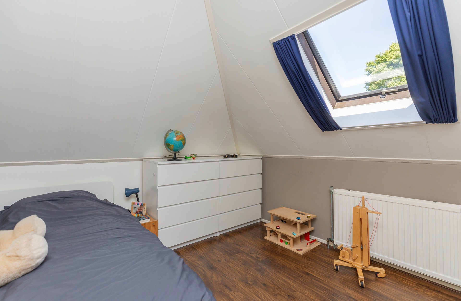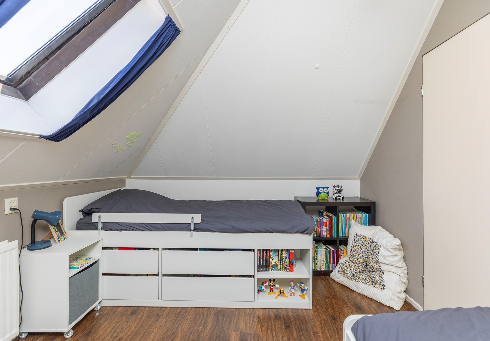 De kamer aan de voorzijde heeft dezelfde afwerking en beschikt over een dakraam. De kamer wordt momenteel gebruikt als kinderkamer, maar is qua afmetingen ook ideaal als werk-/studeerkamer.